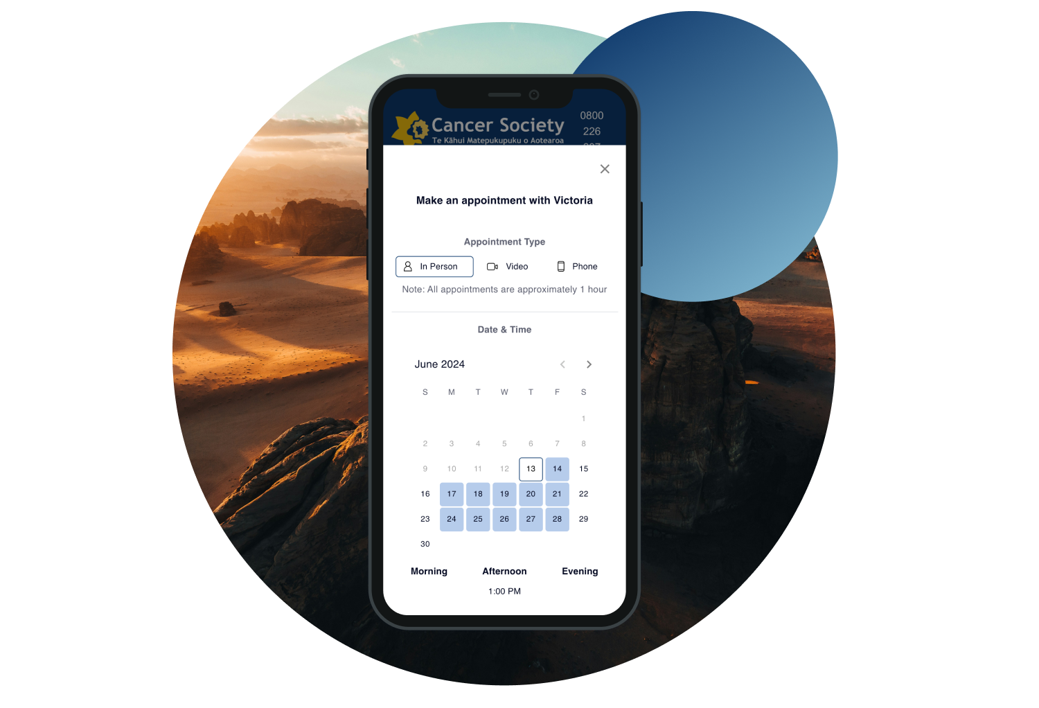 Select your preferred cancer navigator, and choose the way you'd like them to connect with you - in person, by video call or over the phone.